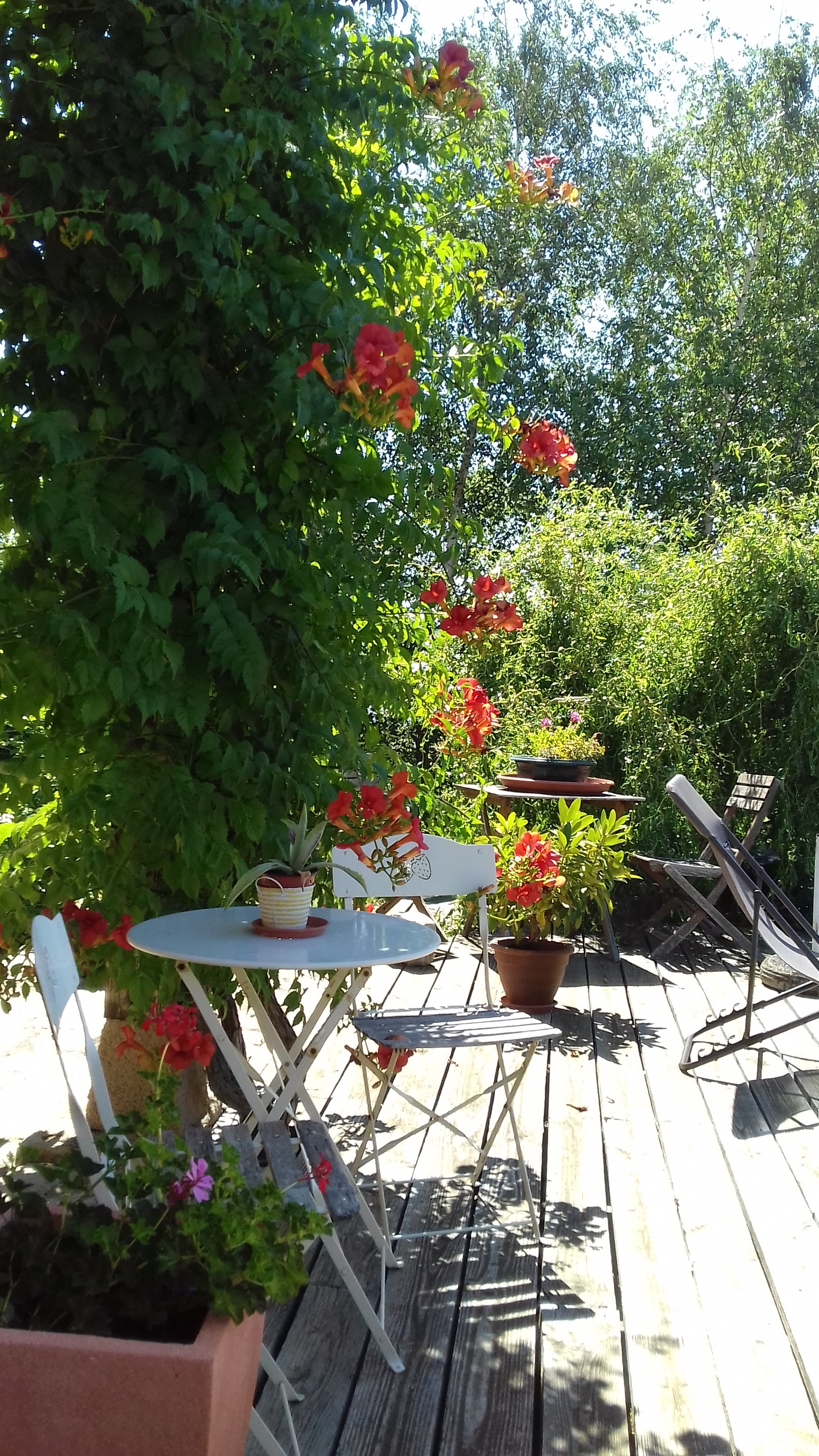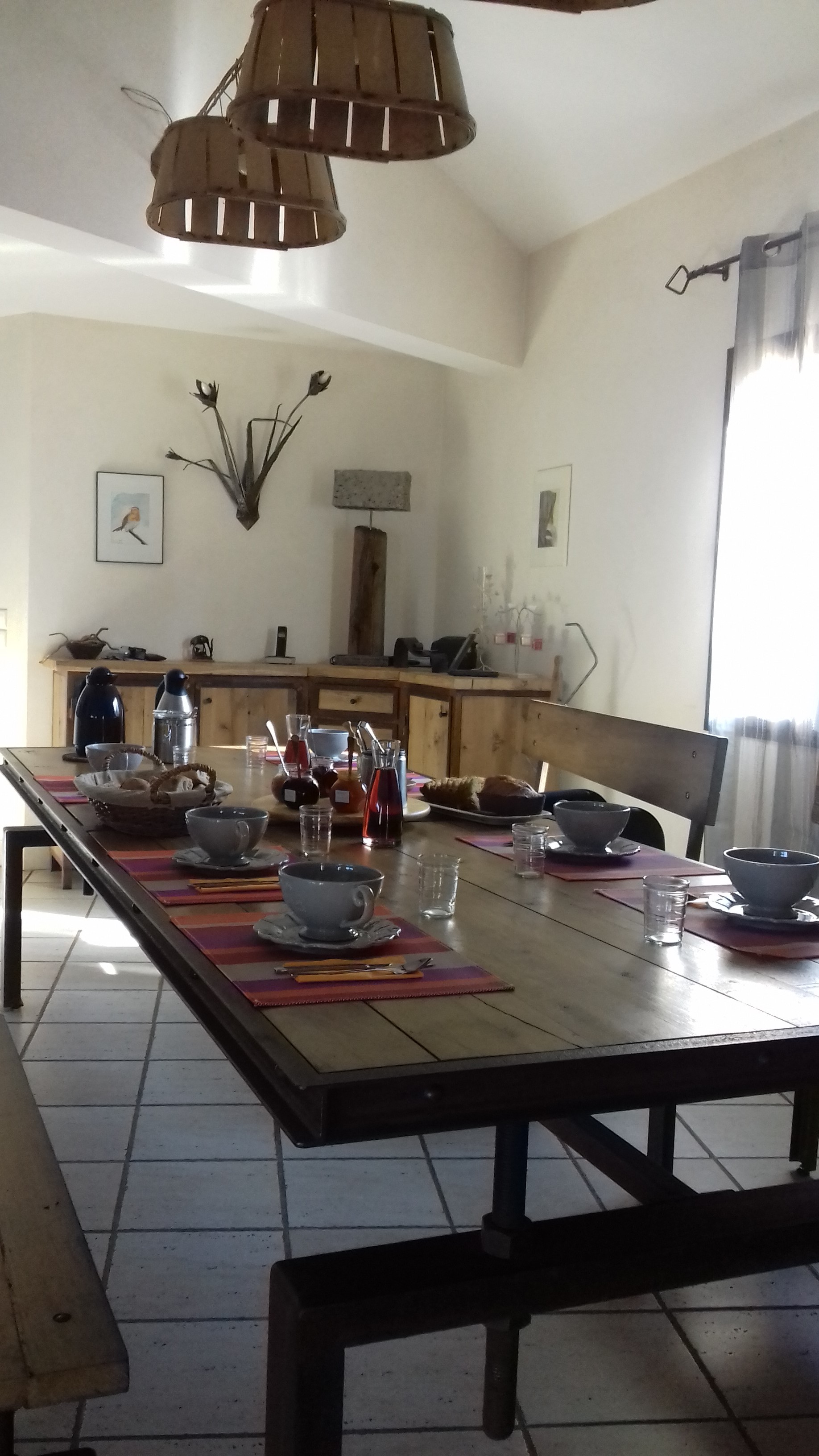 Accès de plain-pied : une chambre (1 lit 2 personnes, salle d'eau et wc privés), une chambre familiale (1 lit 2 personnes, et dans une petite chambre fermée 1 lit superposé, salle d'eau et wc privés). Ambiance bois, enduits naturels. Chaque chambre donne sur une terrasse privée avec vue sur le village et les collines du Beaujolais. Les petits-déjeuners sont servis chez la propriétaire. Lydie pourra vous faire découvrir ses confitures.