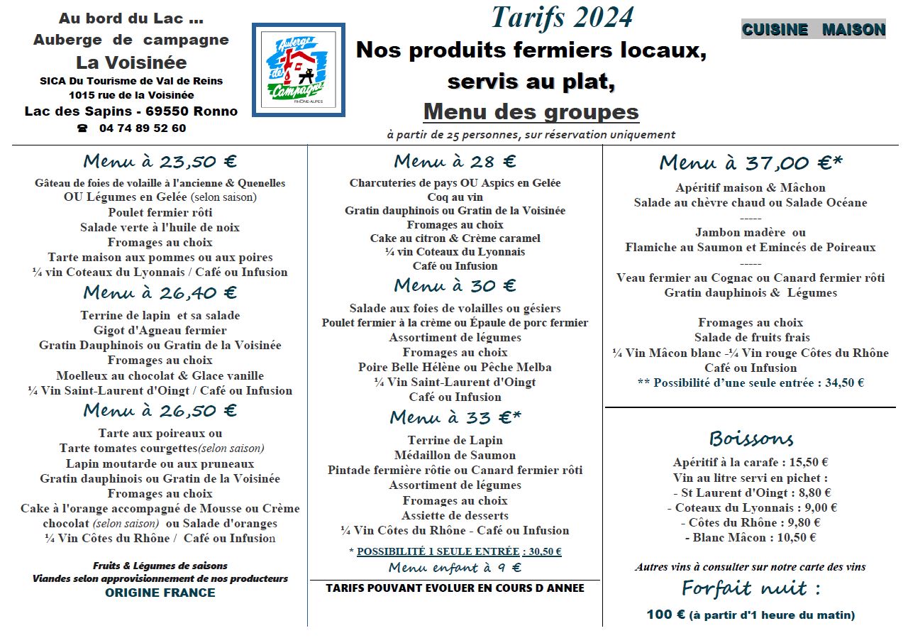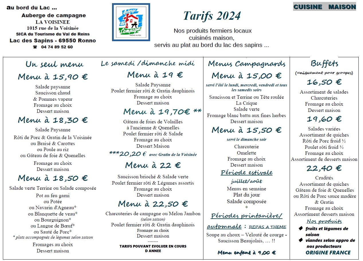 Au bord du "Lac des Sapins". Cuisine traditionnelle préparée à partir des produits du terroir. Bon rapport qualité-prix... Menu unique servi au plat midi et soir.