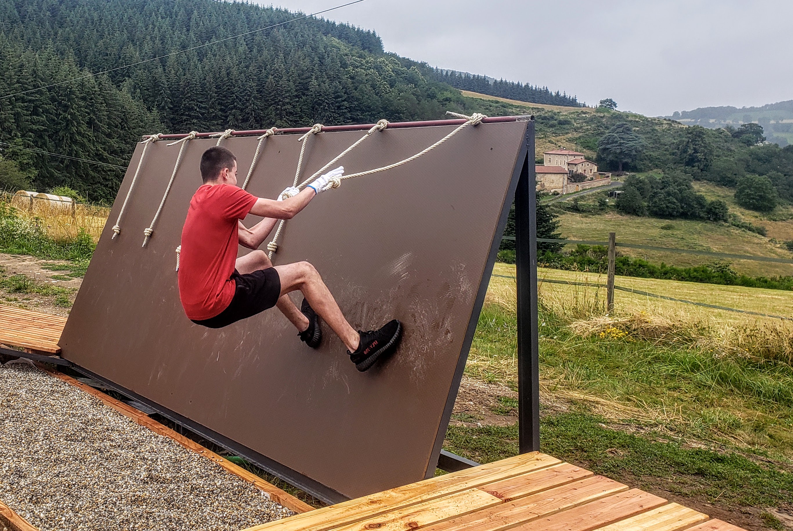 Le parcours est chronométré; il est constitué de 13 agrès + le mur Ninja.