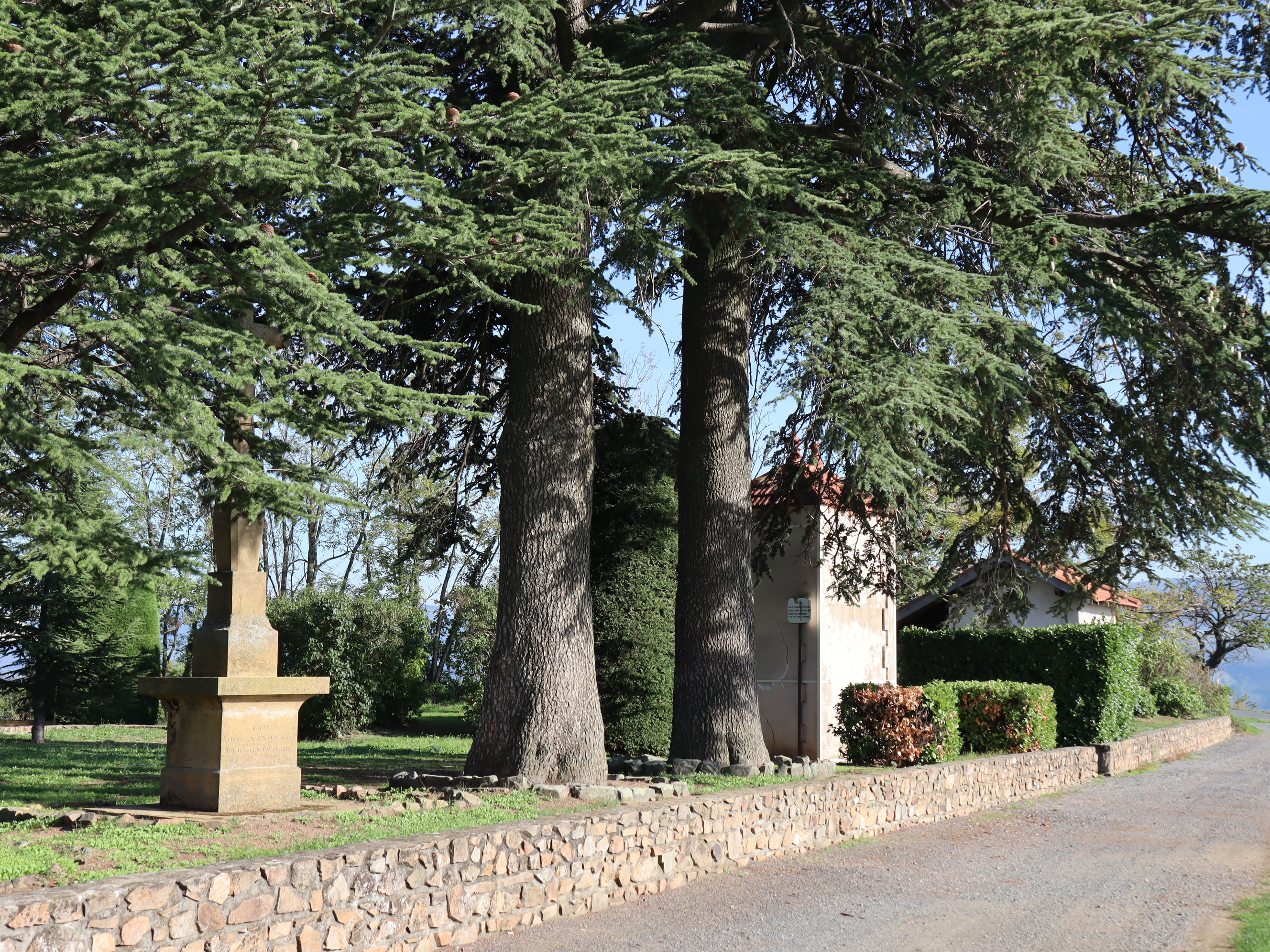 Jean-Marie Fontanière, né en 1831, était très croyant. Il s'installa au lieu-dit Vaux. En 1891, il fut surpris par un violent orage en revenant du bois des Fayes et il faillit trouver la mort. L'année suivante, pour témoigner de sa reconnaissance, il fit ériger sur la colline qui domine le village une croix visible depuis son habitation. Près de ce lieu, il fit construire trois petits oratoires : le premier dédié à l'Immaculée Conception, le second à Saint-Antoine de Padoue et le troisième au Sacré cœur.