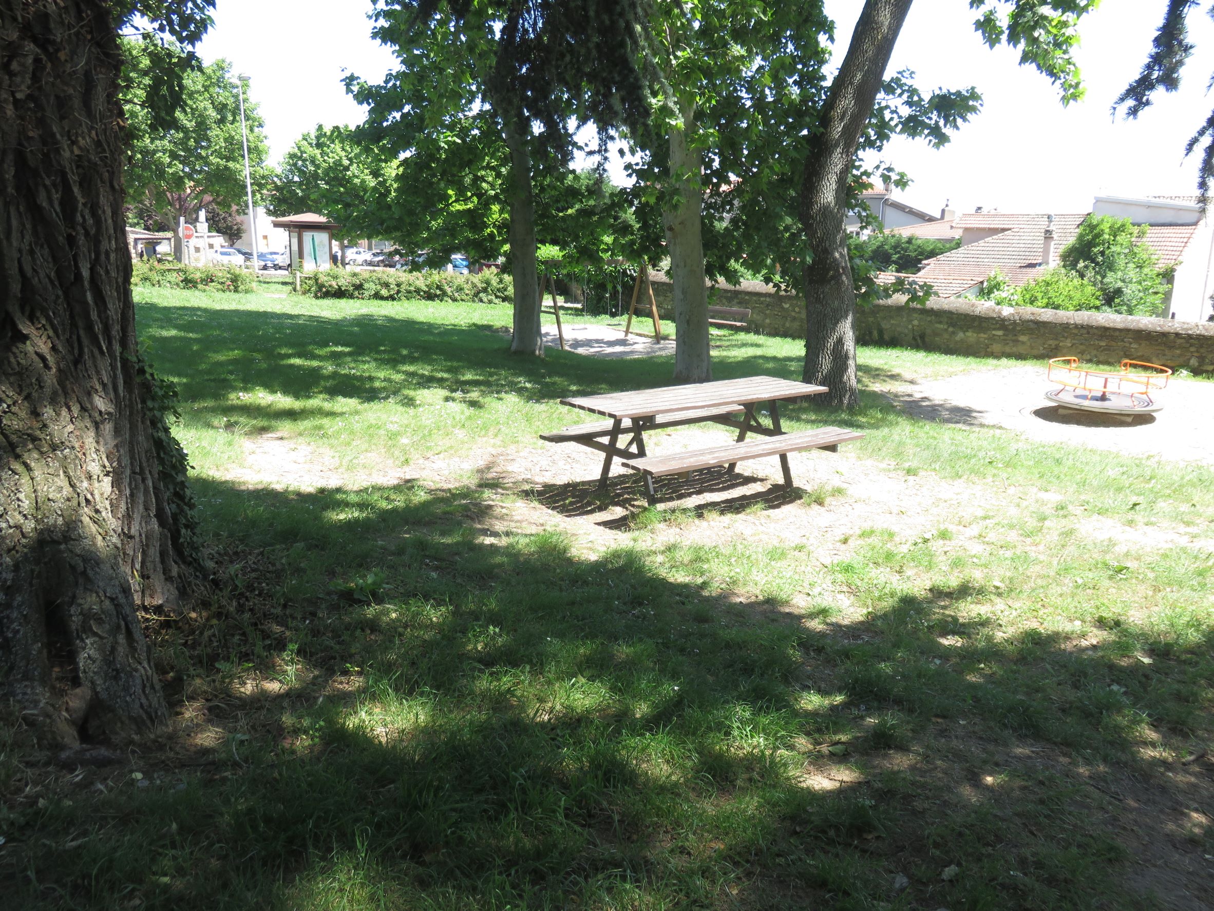 Dans le parc de la mairie, à l'ombre des arbres, vous trouverez 4 tables de pique-nique, une aire de jeux et des toilettes publiques avec un point d'eau.