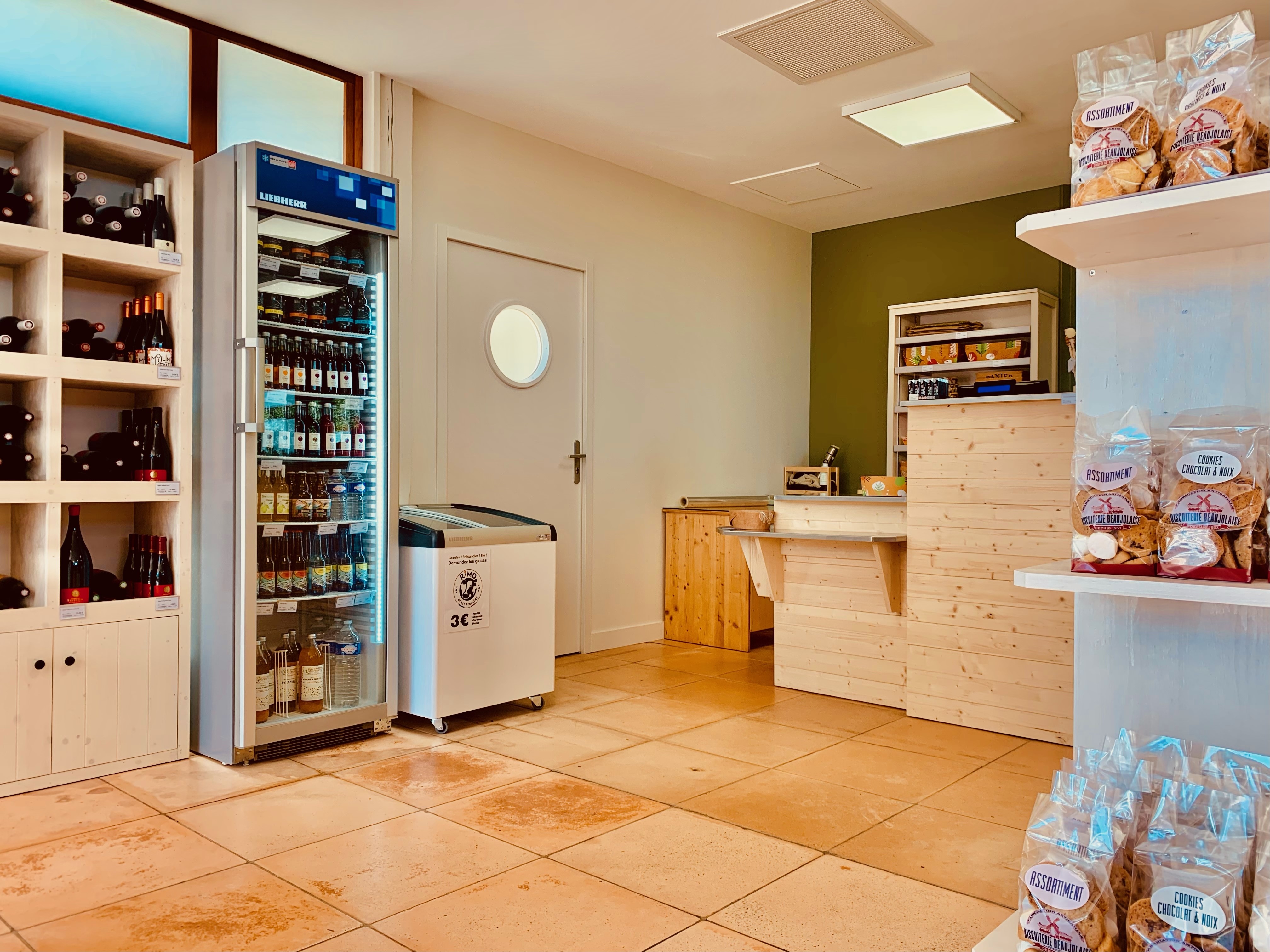 Pain frais, miel, fromages, charcuteries, biscuits, terrines, bière, vin, café et thé l'espace boutique de la Maison de la Randonnée et du Trail vous propose tout le nécessaire pour vous constituer un solide casse-croûte avant de vous élancer sur les sentiers environnants. Vous y trouverez également un espace librairie dédié à la pratique avec toutes les cartes et topoguides de la destination ainsi que toutes les fiches randonnées gratuites des communes environnantes.