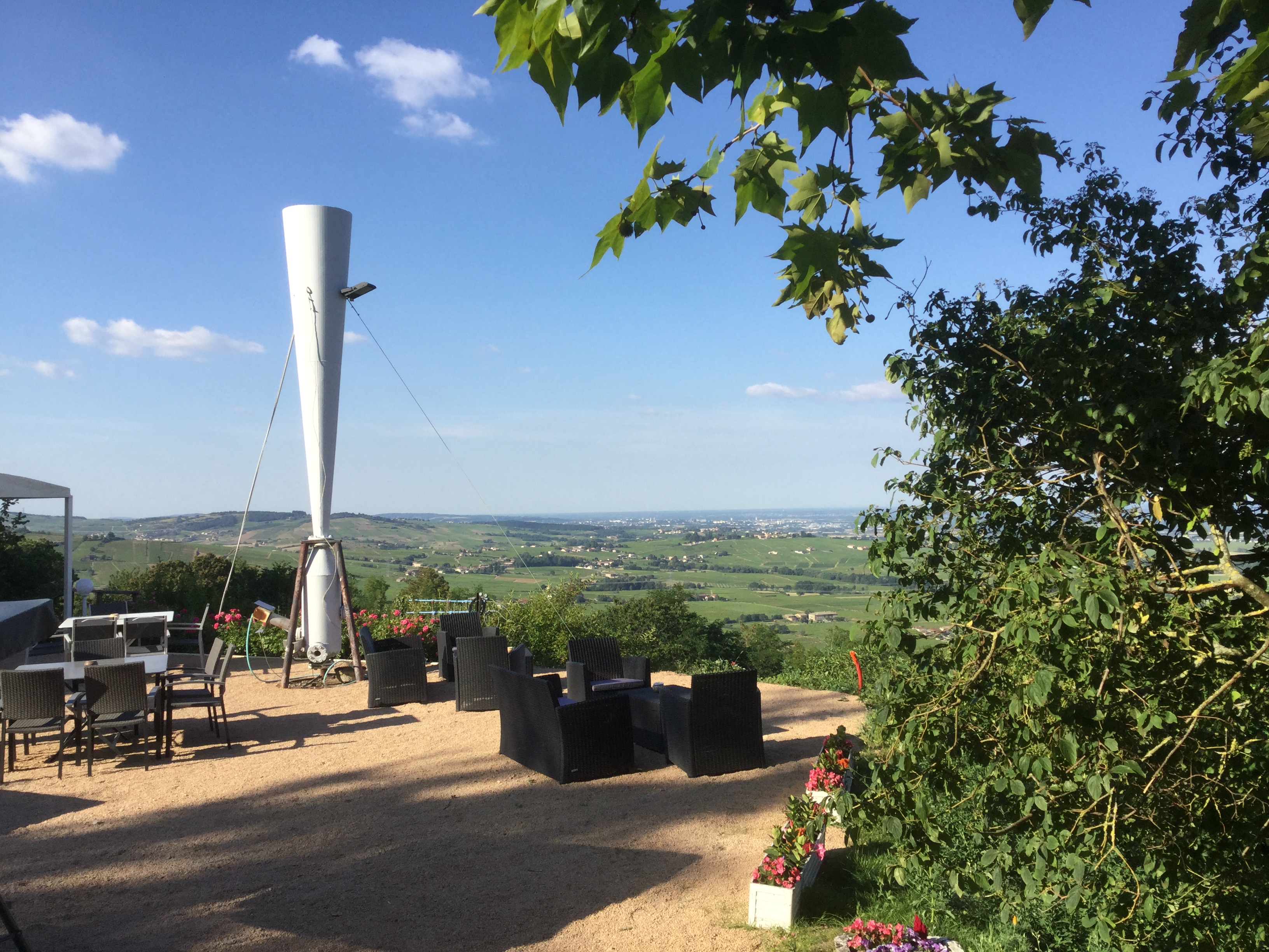 Vous serez servis sur la terrasse offrant une vue panoramique sur le Beaujolais et la Vallée de la Saône ou à l'intérieur charmant de l'auberge.