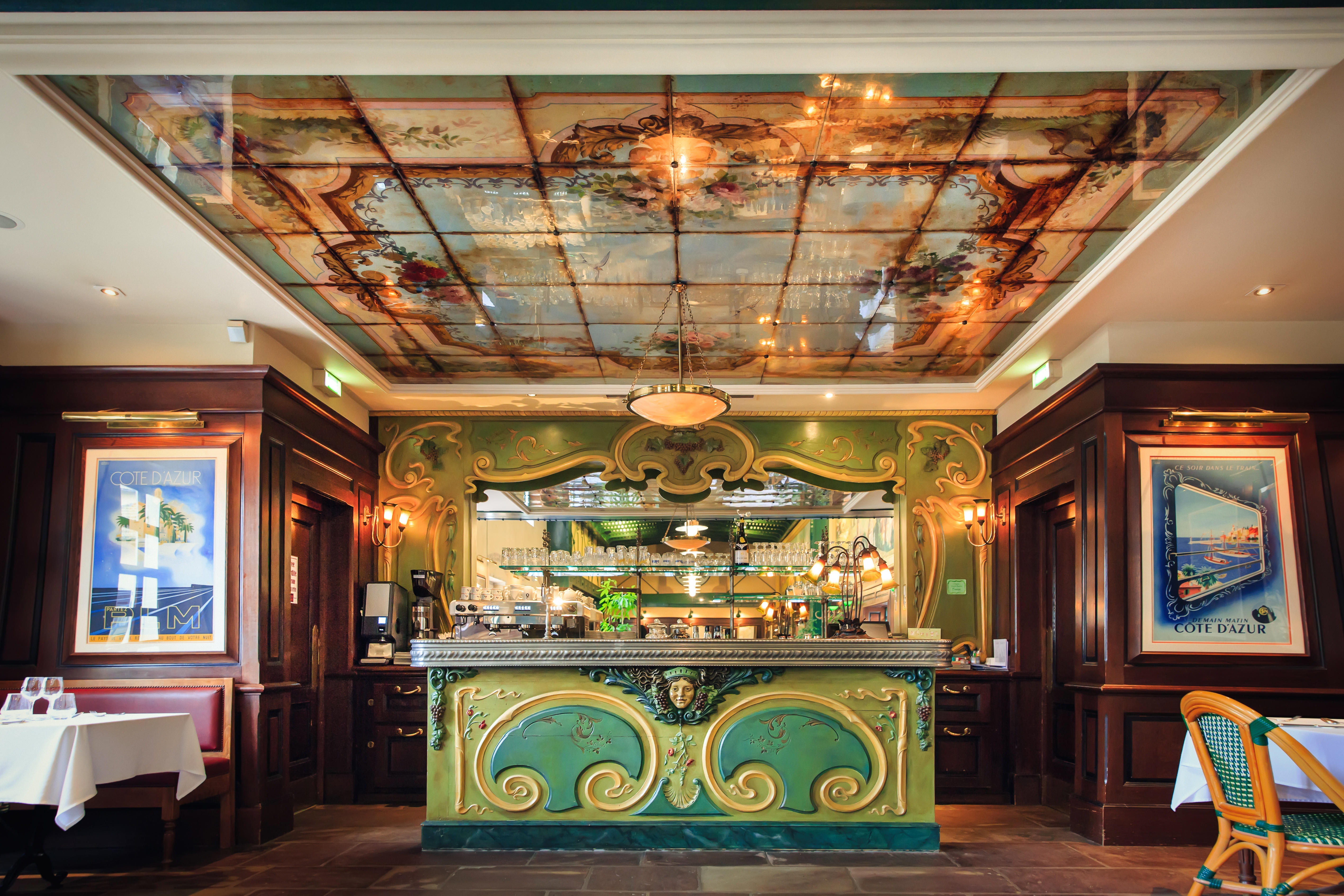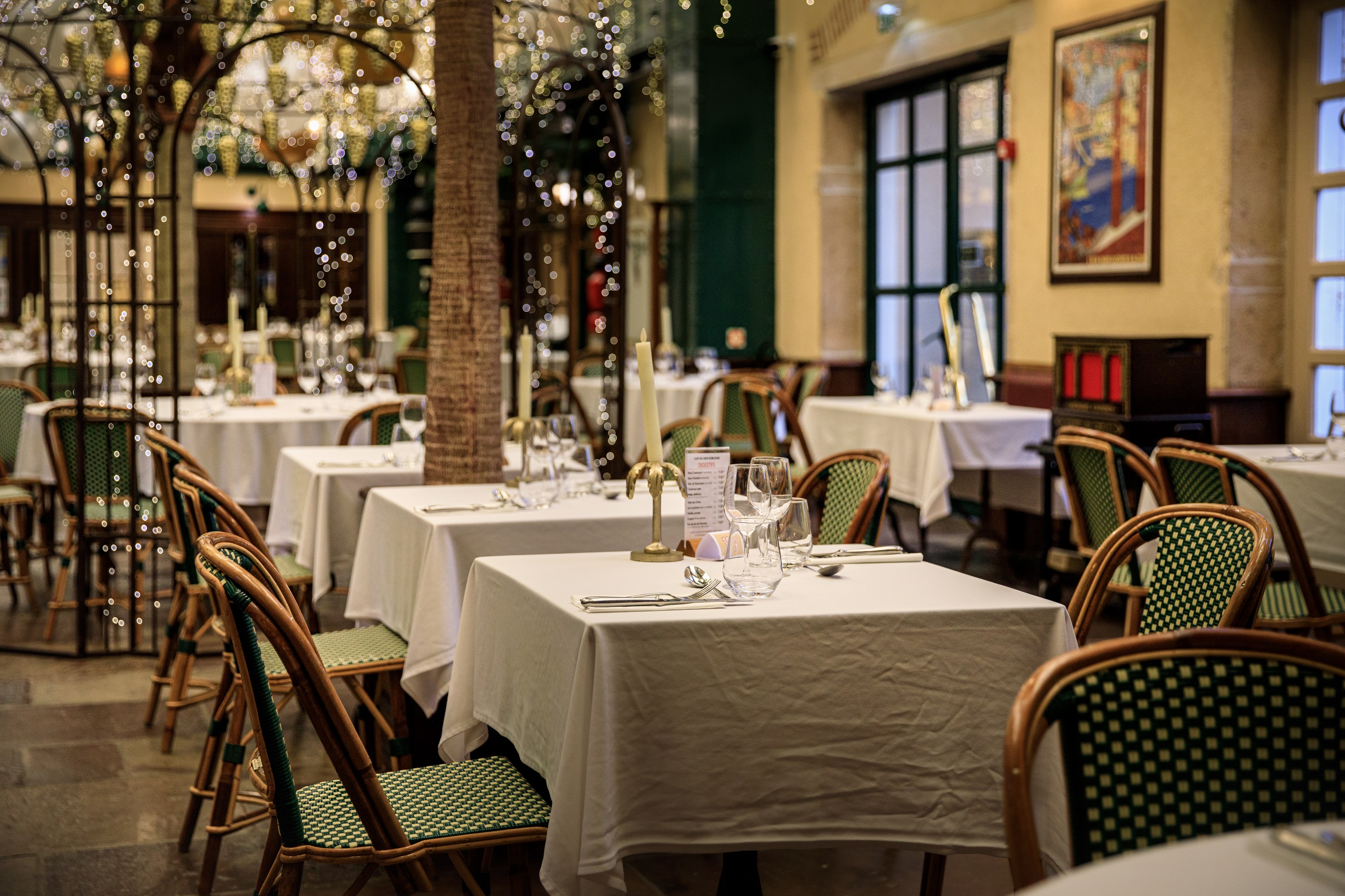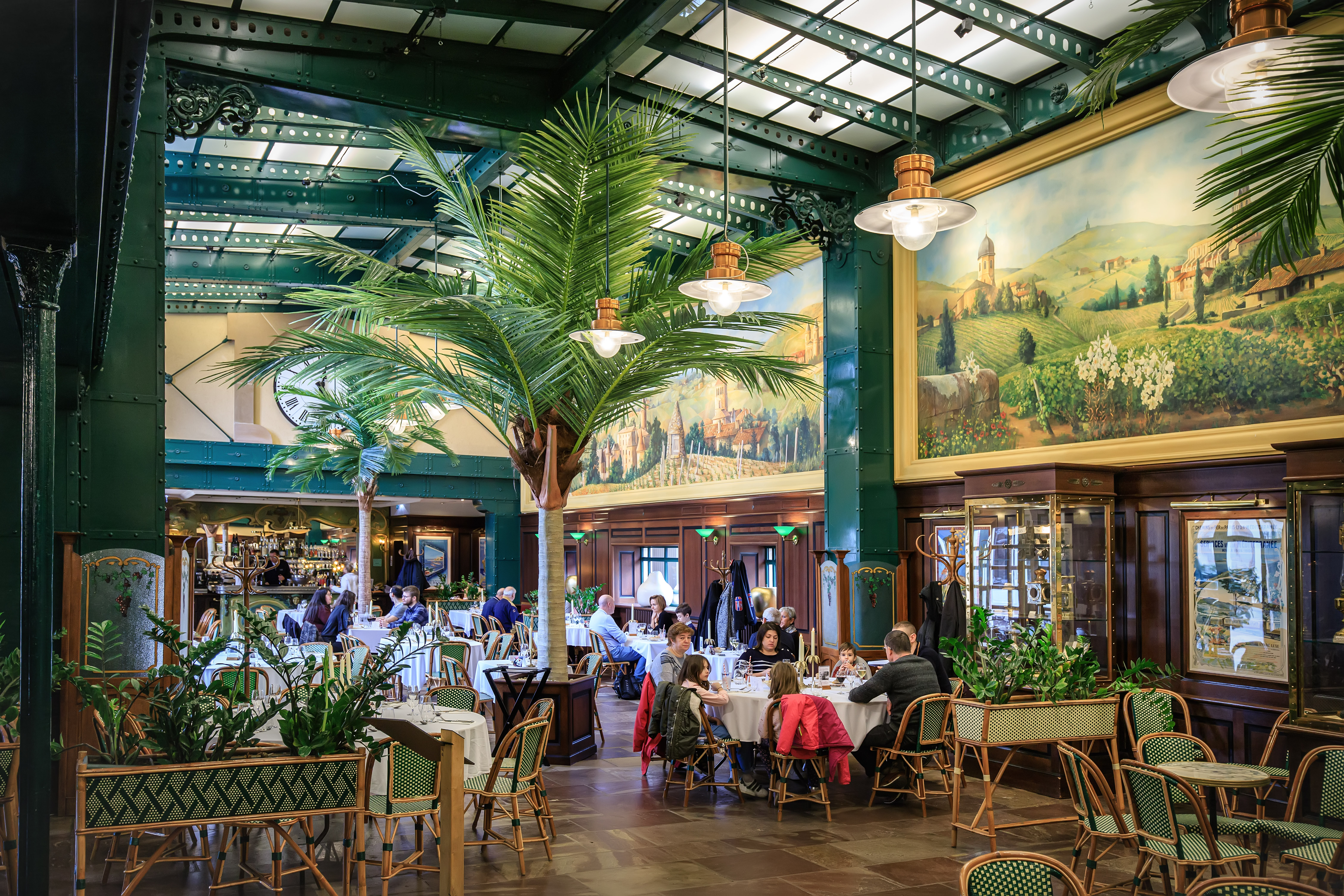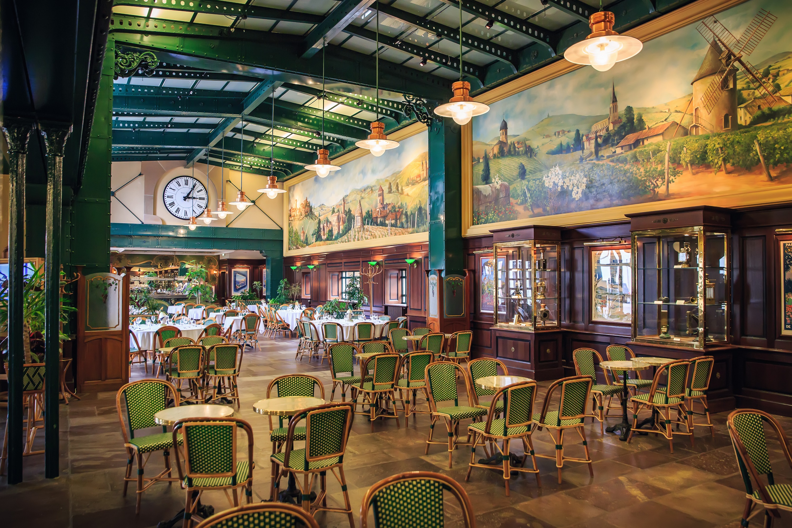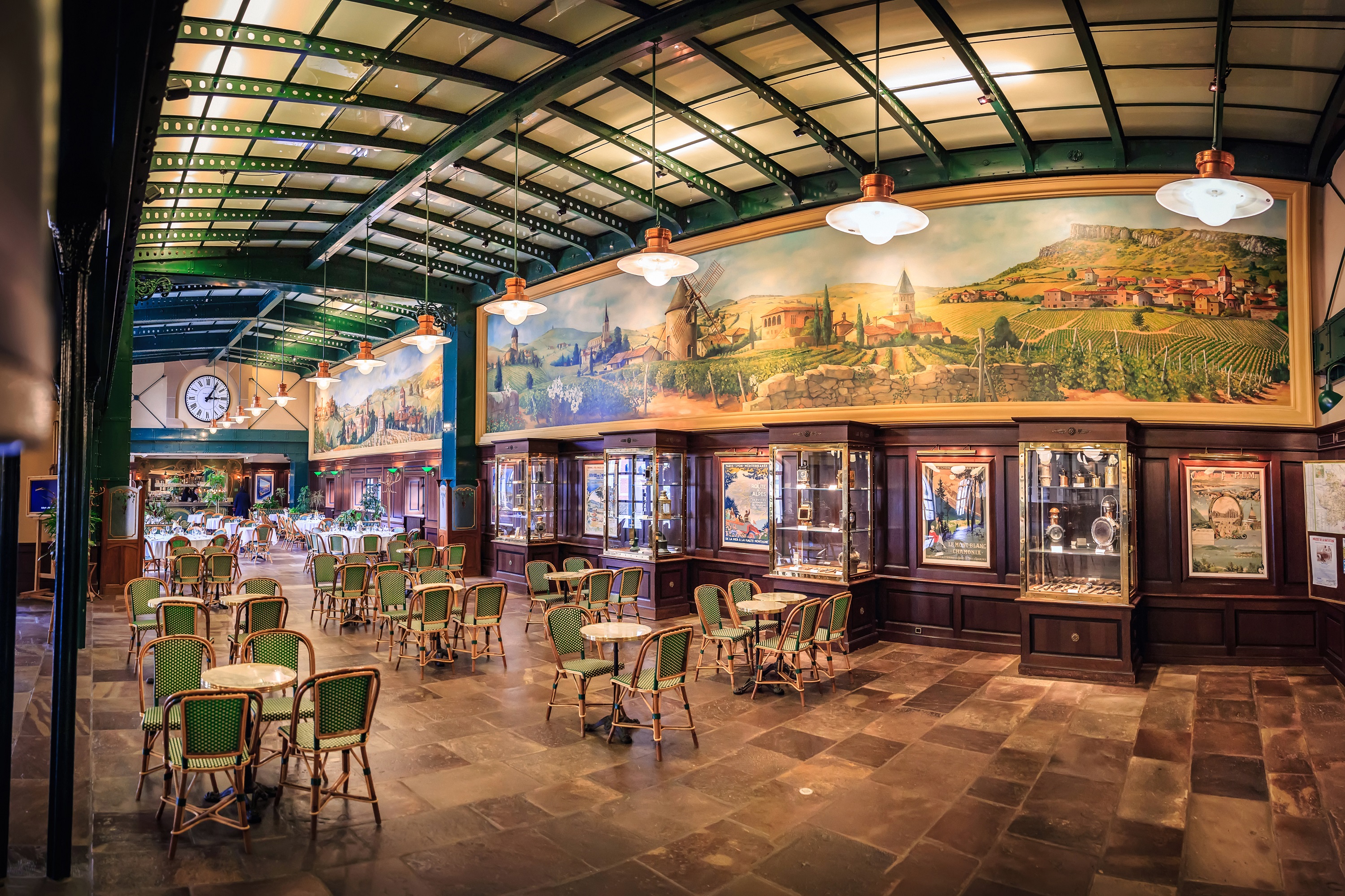 L'espace de restauration est au cœur de l'œnoparc, dans l'esprit d’un hall de gare style 1900.