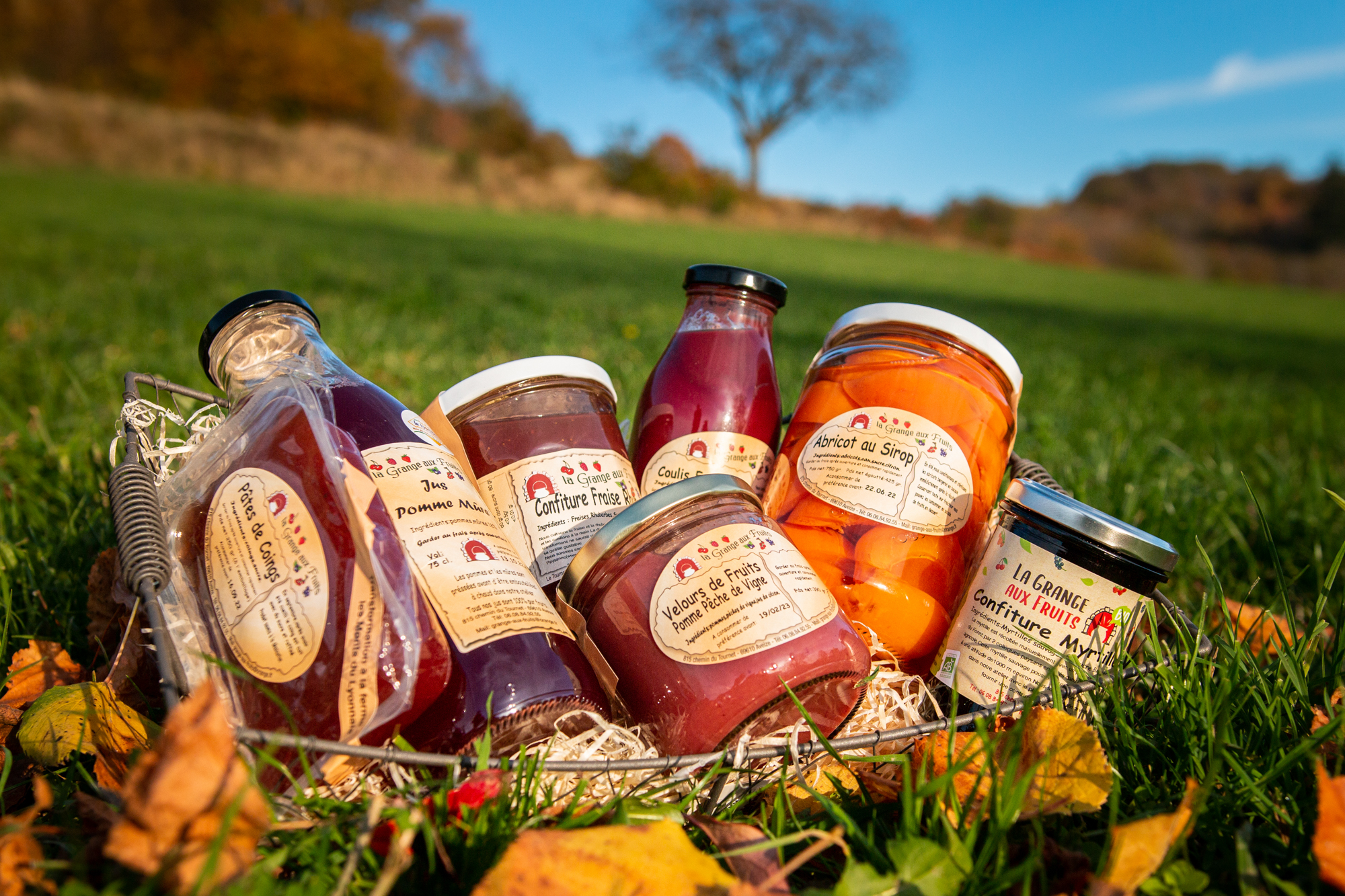 Champs autour de l'exploitation : framboises, groseilles, mûres, myrtilles, cassis, rhubarbes, pommiers, poires, prunes, mirabelles...Produits vendus : fruits au sirop, 19 variétés de confitures, coulis de fruits, sirops de fruits, pâtes de coing...Et possibilité d'acheter des cadeaux d'entreprise : paniers garnis, coffrets. Produits issus du commerce équitable : Fermes du Monde.