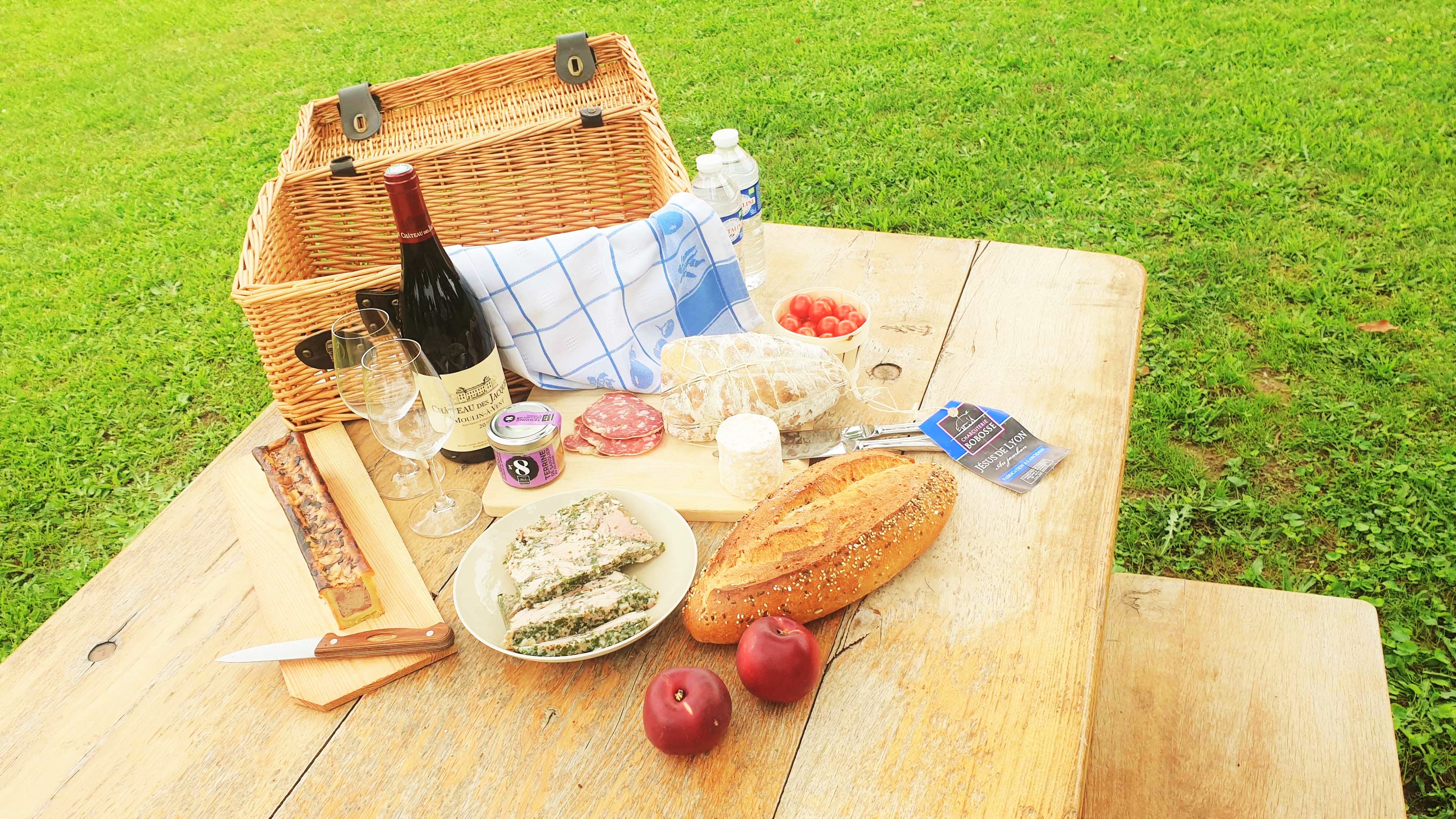 A 12h vous sera remis un panier de pique-nique de produits locaux (de la belle Maison Bobosse) qu'il vous sera possible de savourer à la table vigneronne dans le parc du château des Jacques, à l'ombre d'un magnolia.
