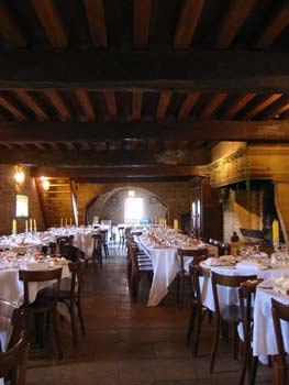 Salle en partie voûtée, située entre les tours rondes, pour réceptions, mariages et séminaires.