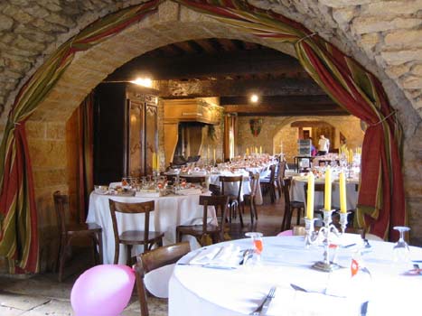 Salle en partie voûtée, située entre les tours rondes, pour réceptions, mariages et séminaires.