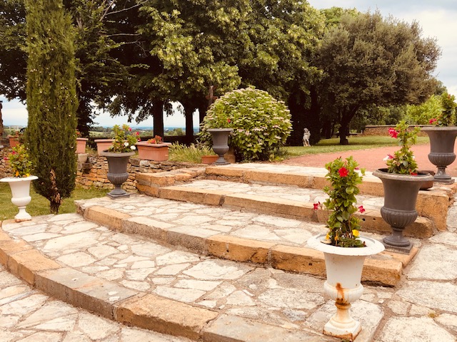 Les extérieurs sont également très appréciés avec une terrasse ombragée sous les tilleuls et marronniers, un grand espace enherbé, une cour intérieure en pierres dorées et les vignes qui sont devant le domaine…