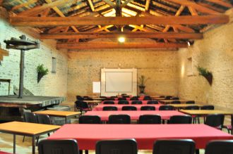 Salle de la grange de 30 à 80 personnes et cuvage jusqu'à 200 personnes + salle de séminaire 65m².
