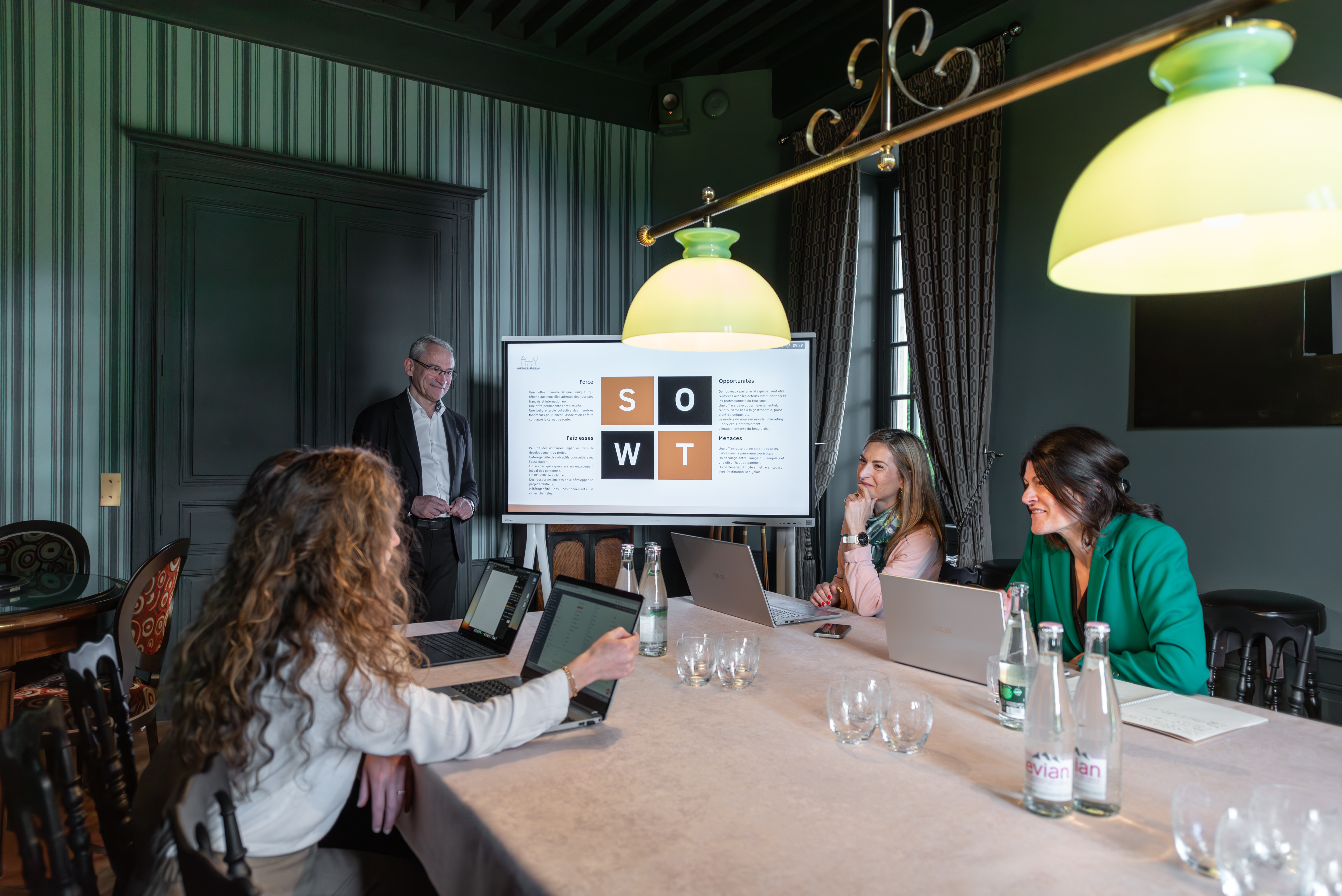 A côté des salles de réception transformées pour votre événement en espaces de travail, les salons chaleureux avec leur boiseries, parquets et cheminées invitent à échanger de manière plus informelle entre les sessions de travail. Profitez du parc XIXème et des vignes environnantes pour une activité sportive ou un team building. Une grande sélection d’activités disponibles à l’intérieur et à l’extérieur contribue également à la cohésion d’équipe, tout comme une dégustation des vins de notre Domaine, issus de 300 ans de tradition viticole ! Vous pourrez également partir en « discu-balade » à travers le parc et les vignes : vous échangerez autrement…