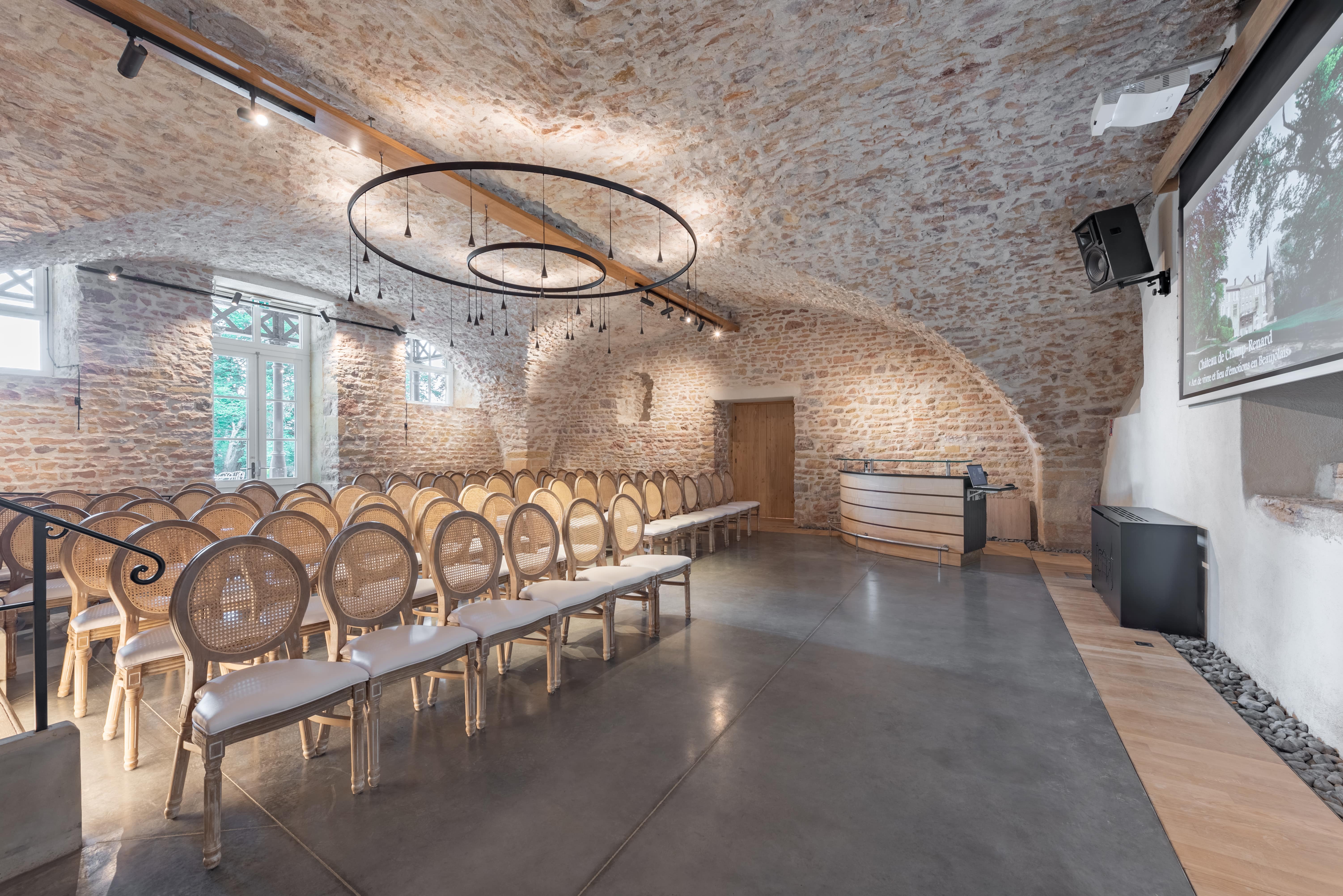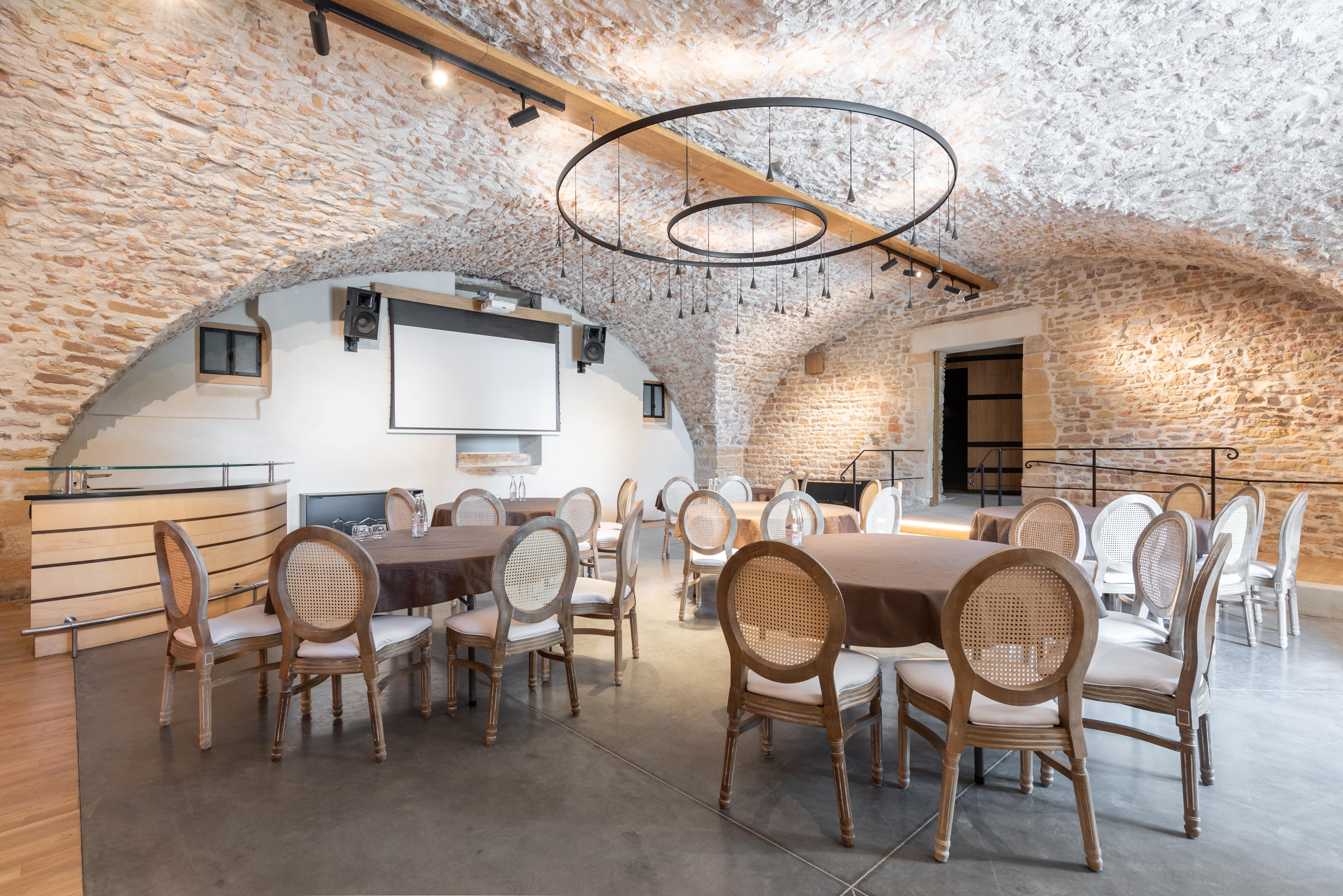 Idéalement situé à 30 mn de la gare TGV et à 35 mn de Lyon, notre domaine historique vous accueille au milieu des vignes dans un cadre prestigieux associant confort et élégance. Nous vous proposons des espaces modulables (500m2) pour s’adapter à tous vos besoins et un accompagnement sur mesure pour l’organisation de votre événement.
