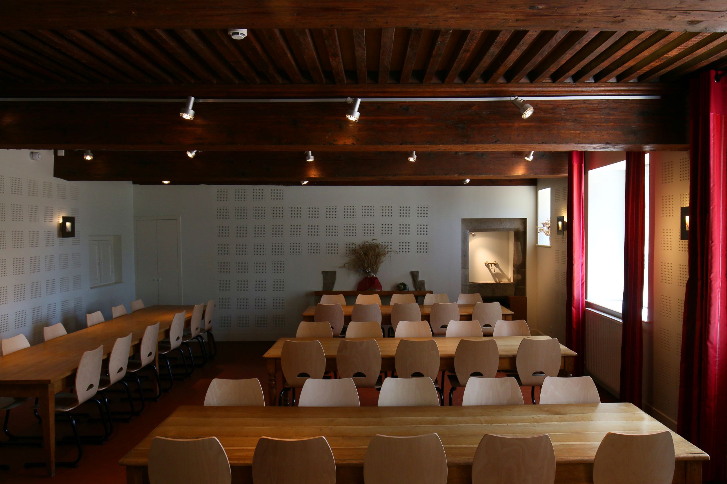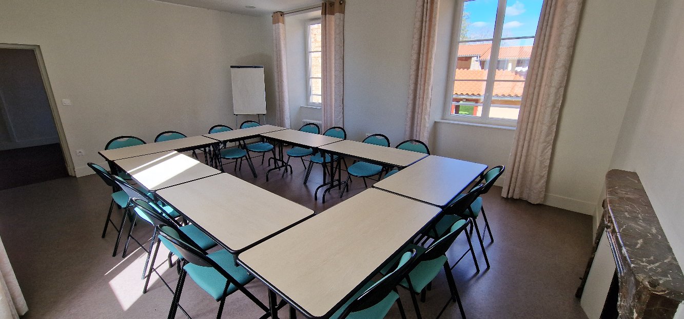 Nous proposons à la location 11 salles de capacités diverses, allant jusqu'à 100 personnes et que nous équipons et disposons selon vos besoins: connexion internet wifi, vidéo-projecteur, écran de projection, sonorisation, paperboard, chaises, tables...Nous vous accueillons au sein de notre magnifique domaine pour vos sessions de formation, de team-building et bien d'autres possibilités encore. De plus, nous disposons de 2 salles de restauration que nous ouvrons à nos hôtes pour le déjeuner. Vous pourrez également profiter du jardin fleuri et du parc. Sur réservation uniquement. A bientôt!