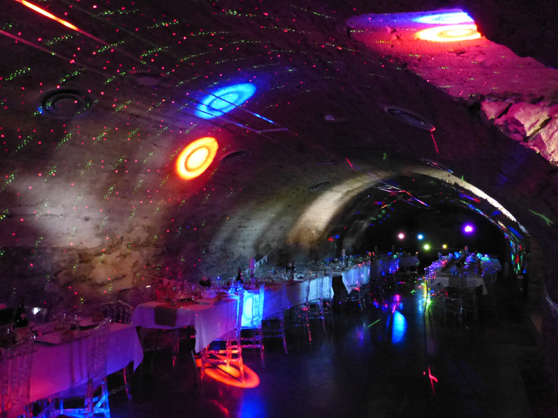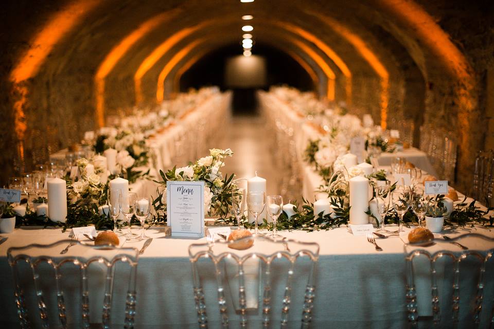 - l'ancien cuvage du château : une salle voûtée de 175m² (pouvant accueillir jusqu'à 150 pers. assises avec piste de danse / jusqu'à 180 pers. en mode cocktail uniquement), donnant sur un espace ouvert et couvert, les arches galeries.