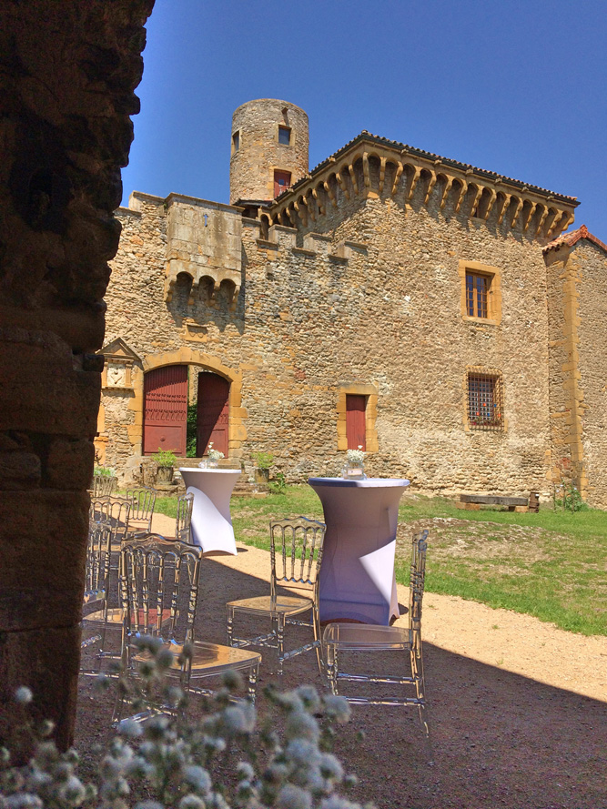 Monument historique en pierres dorées, le château surplombe l'Azergues. Ses espaces intérieurs et extérieurs accueillent tous types de réceptions : mariage, baptême, anniversaire, séminaire, incentive, tournage, shooting.